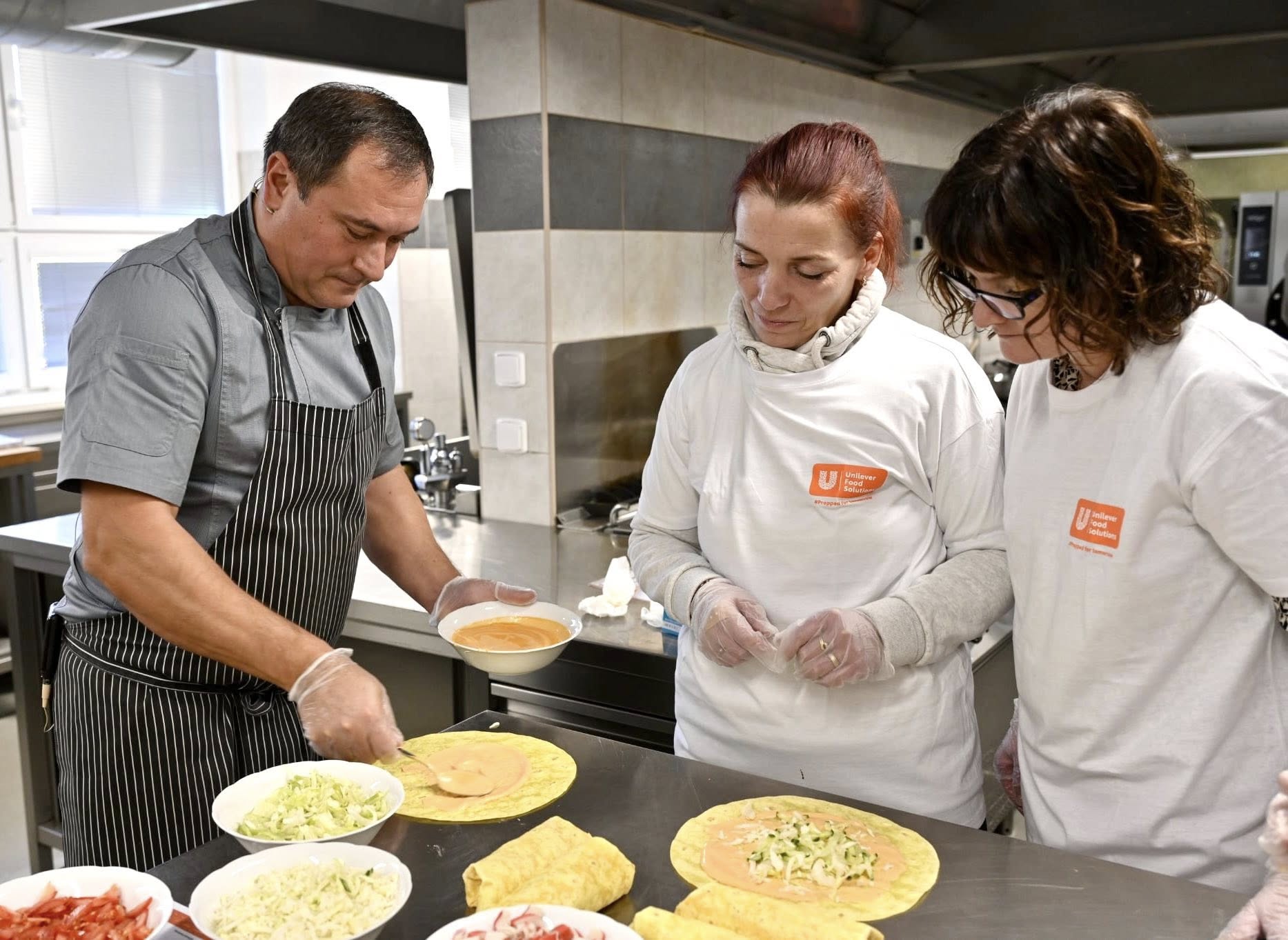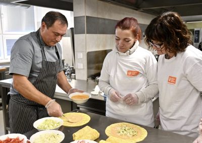 V kuchyni panovala tvůrčí a přátelská atmosféra. Profesionální kuchař a školitel Juraj Dohňanský ze společnosti Unilever Food Solutions společně s našimi kuchařkami předvedl přípravu osmi bezmasých pokrmů, například: